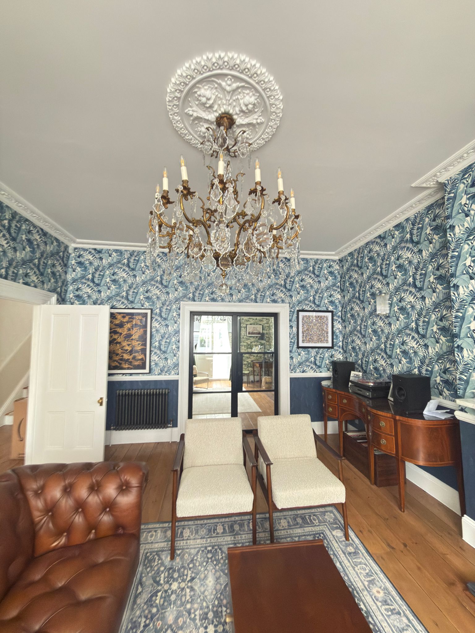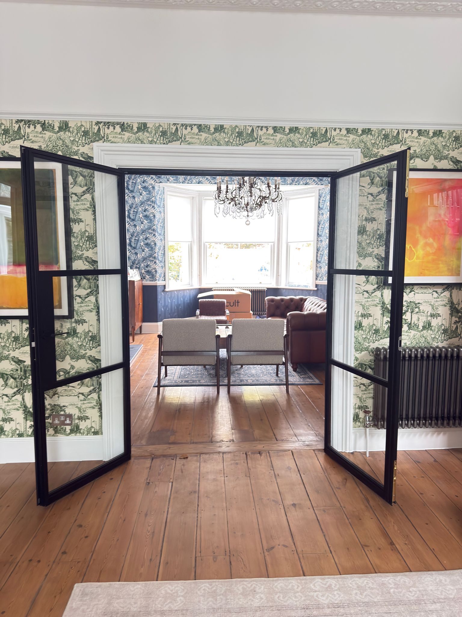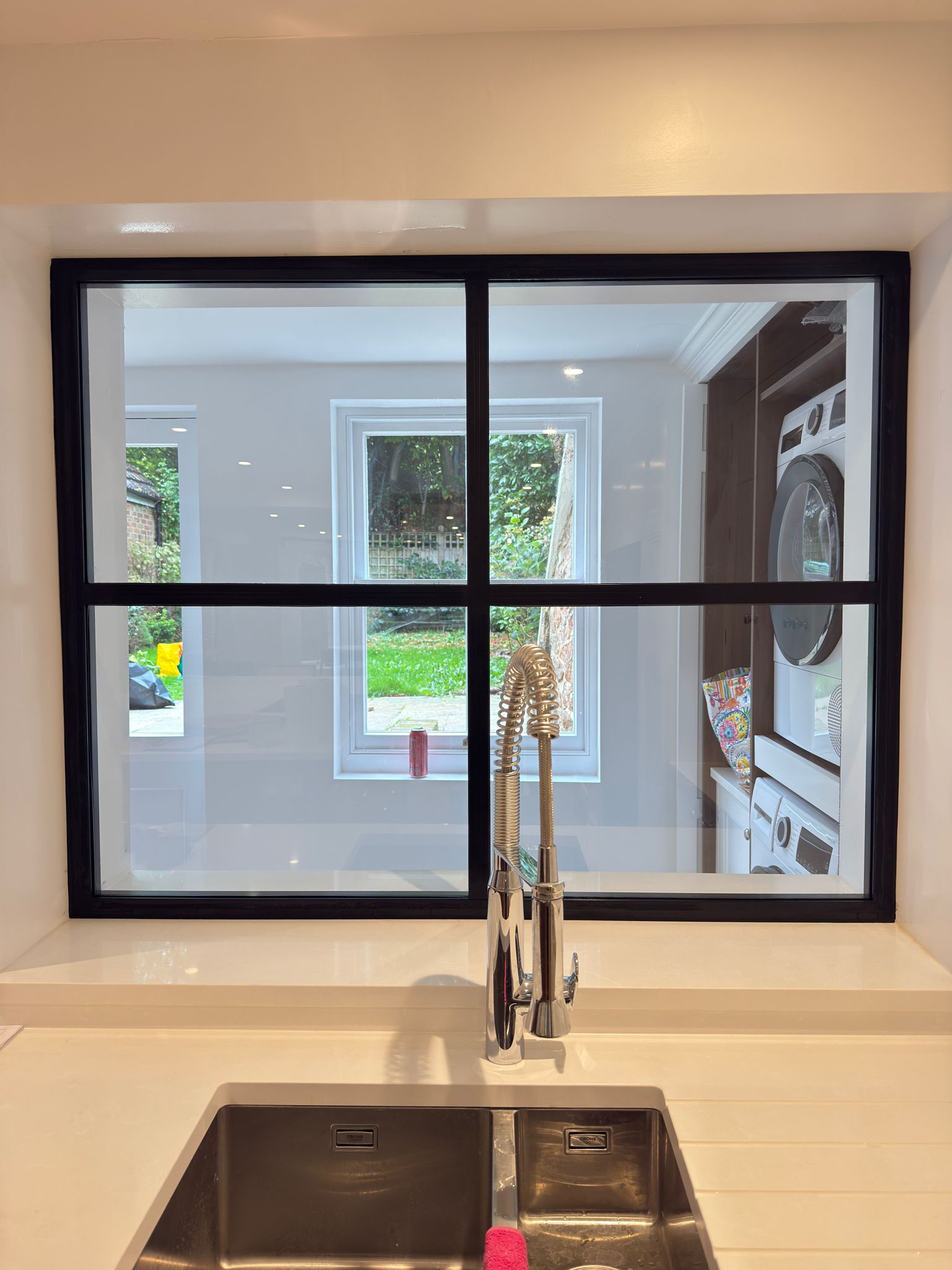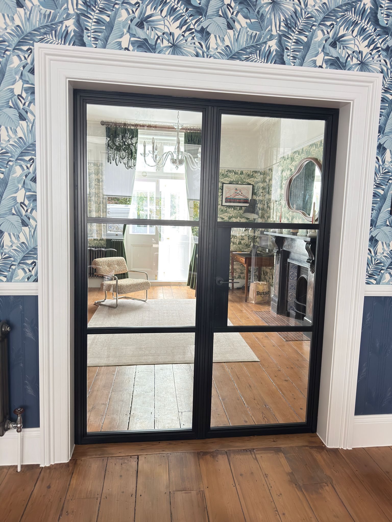 The slim, black-framed aluminium doors and screens, manufactured by BAM, complement the home’s period features while bringing a contemporary edge. Every element was made to measure, ensuring seamless alignment and precision detailing throughout.
